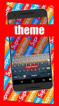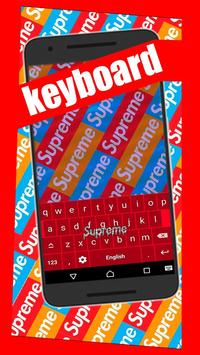 Keyboard with Supreme wallpaper.