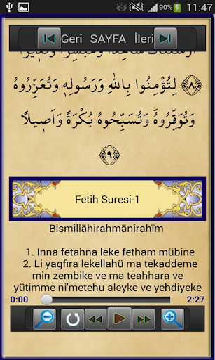 Do you want to memorize, listen or read the Bible's Surat Al-Fath in the Qur'an? Would you like to adjust the size of the font according to yourself without difficulty while reading? Our application provides all of these requests for you. The Qur'anic Surat al-Fathi is in Arabic in our application, in latin letters for those who do not know, in arabic and meal form. If you want to listen to it with a great tone of voice will be waiting for you. In addition, the ability to fast forward, rewind, stop and repeat repeatedly will make it easier to memorize and listen. Moreover, you can magnify fonts and font sizes by yourself with zoom buttons.