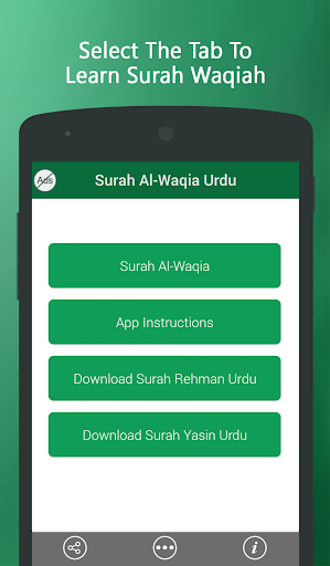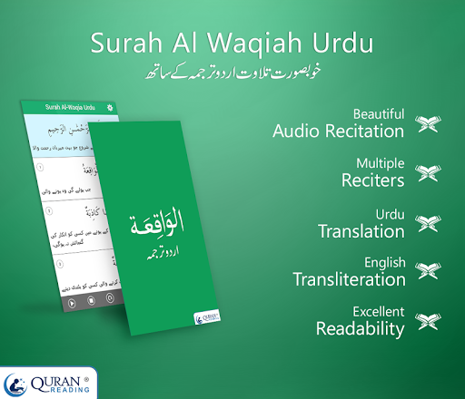 Surah Waqiah Urdu is a Smartphone Islamic Application, which is developed with the intentions to assist the Muslims towards better learning of sanctified chapter of Quran. This App facilitates native Muslims with easy to use features through Urdu translation, transliteration, and mp3 audio recitation to learn, recite, and read Surah Waqiah.