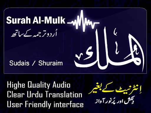 Complete Recitation / Tilawatof Surah Mulk with Translation. If you are searching of Quranic Surah(s) in Audio MP3 versions then all Muslims are requested to please kindly download this Application and listen to SuratUlMulk from the Quran.