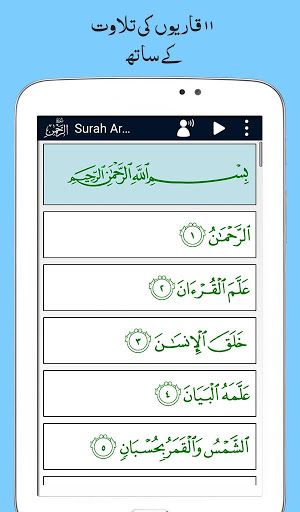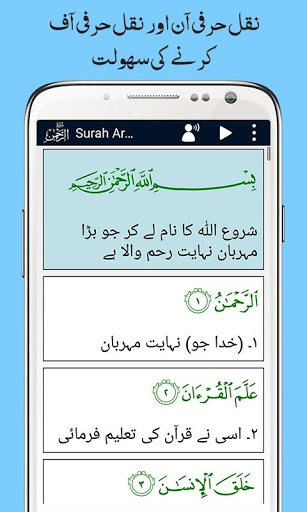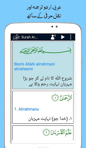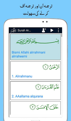 Surah Ar Rahman (Arabic: سورة الرحمن) 55th Surah of Al-Quran and mostly people want to listen or read this Quranic Surah everyday or more frequently. It’s also really important to understand the meaning of Al Quran in our Language. ImaginaryTech (Imagination to Innovation) Developed Useful Quranic Surah App “Surah Al-Rahman” with 11 Qurra Translation and Urdu Translation Audio. It’s a free app with interesting features like ON or OFF Urdu Translation Audio any time if you want. Change Font Size, and Color according to your choice and different different colors for Arabic, Urdu and Transliteration. You can Switch OFF or ON the Translation Text or Transliteration Text for their convienience. So Listen the Recitation or Read this surah on your mobile any time anywhere along with Urdu translation (Text and Audio).