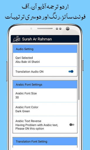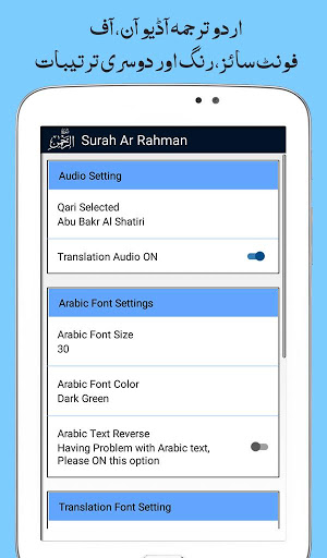 • Urdu Translation Audio ON / OFF Feature
