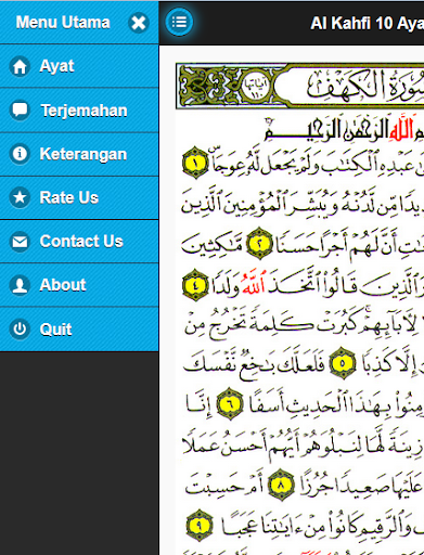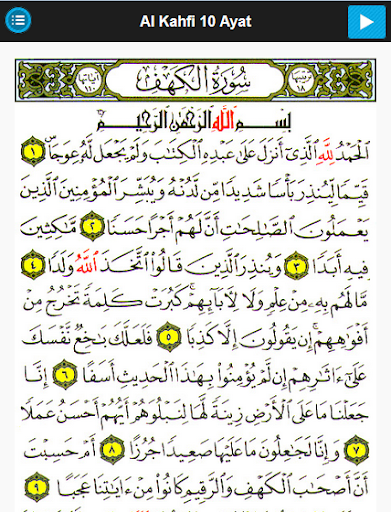 Applications for easy reading of Surah al-Kahf. Quran verses provided, translation and reading. It is very easy to use.
