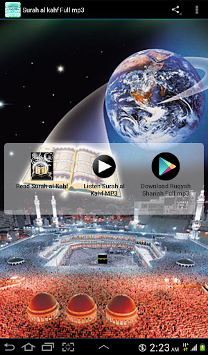 Surah Al-Kahf Full mp3 App is a beautifully designed application with audio recitation of the Surah Al-Kahf. Surah Al-Kahf was revealed in Makkah and contains 110 Ayats. Requires no streaming or downloads. Just download this App and you can listen to surah al kahf by reciter of your choice offline.