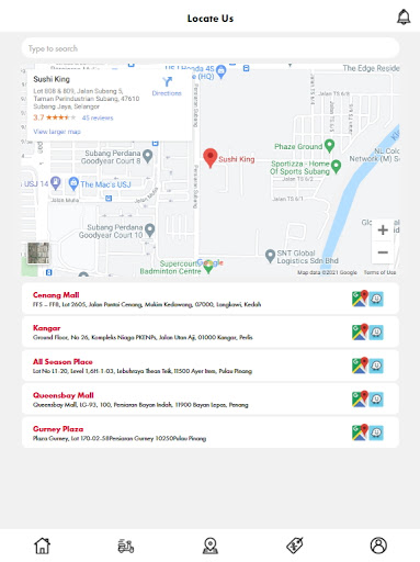 -Locate your nearest Sushi King Outlet with the “Find Us” function.
