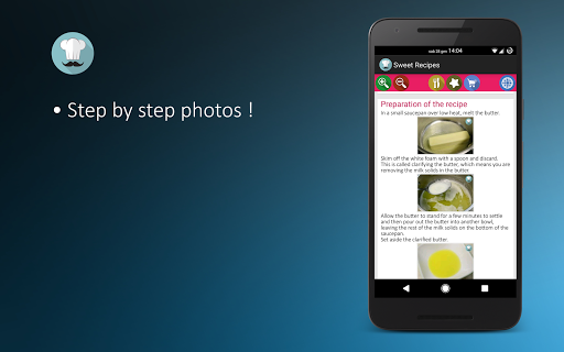 ✔ Sweet Recipes contains no advertising, and doesn't require internet connection to access the recipes!