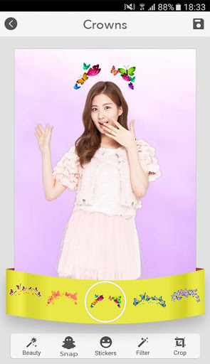 Sweet Snap - Sweet Snap Selfie Filter Cam is an professional photo editor for free and very easy to use with hundreds of beautiful cute stickers, charming heart crown, gorgeous flower crown, trendy snappy photo, with endless beautiful sticker effect. If you are looking for an app to make you look gorgeous and attractive, you defenitely do not miss this Crown Heart Photo Editor