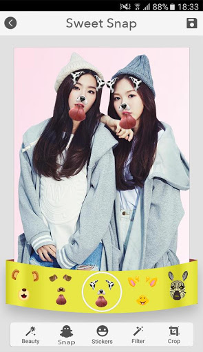 Sweet Snap - Sweet Snap Selfie Filter Cam is the best photo editor with many professional editing tools for free and extremely friendly & nice interface. You can edit your photos easily with many cute stickers, trendy snappy sticker that are updated regularly such as: heart crown sticker, gorgeous flower crown, cat sticker, lovely doggy face, and hundreds of kawaii filters, coachella filters and latest sticker effects.
