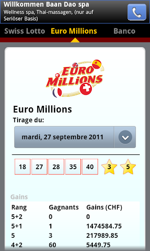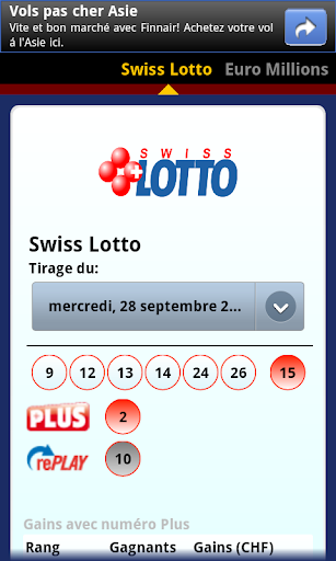 Swiss Lotto for Android is a small tool which allows the reading of the results Switzerland Lotto, Trio Magic, Banco and Euro Millions from your Smartphone Android.