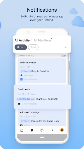 Funnel communication: With the @mentions and Activity tabs, no matter how many workspaces you join, your messages are in one place, and one tap takes you where you need to go.