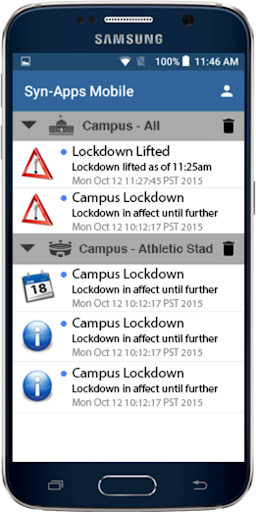 Syn-Apps Mobile is a powerful application that leverages mobile technologies for rapid mass notification, 2-way emergency and non-emergency communications, and more. Combined with Syn-Apps SA-Announce, Syn-Apps Mobile enables a reliable and easily configured notification service to unlimited mobile recipients without the transaction cost of SMS delivery services. Additionally, organizations can customize Syn-Apps Mobile with unique branding and user-defined registration fields to be collected from each user.