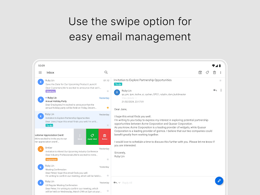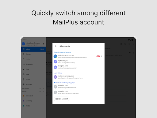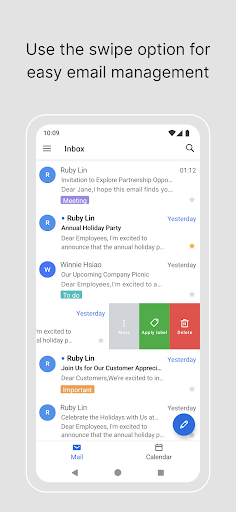 Composing emails or replying to messages on mobile devices can be a hassle. With the intuitive design of Synology MailPlus, you can accomplish more with less effort. Organize your emails right in the palm of your hand. The swipe gestures allow you to quickly apply desired actions to your emails. Quick-reply templates save repeated keystrokes and make your reply even more efficient. With Synology MailPlus, managing emails is only a few taps or swipes away.