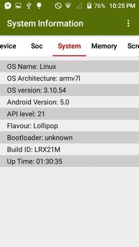 Light weight System Information gives complete detail of your android software and hardware, regarding Device, SoC, System, memory, Features, Censors and Installed Apps. This information will be very helpful while you selling or purchasing smart phone.