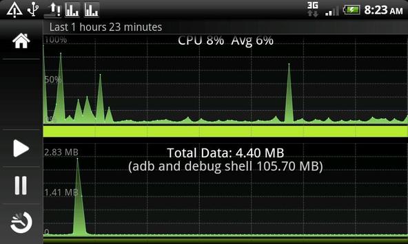 Displays CPU user and system times for each running process so you can see which apps are slowing down your device. As System Monitor Lite 4 Android is in the foreground and retrieving stats each second it may be using the most cpu but this is expected while open.