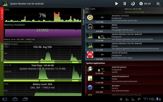 Monitor system info for your Android device. Monitor your device continuously (12 hours limit for lite version).