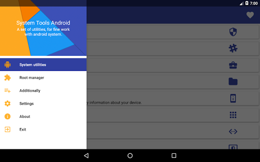 System Tools Android is a true utility processor. This program includes many small utilities for finer work with the system (including root utilities).