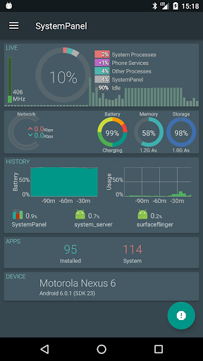 SystemPanel is a tool to let you view and manage just about everything possible about the goings-on of your device and visualize it in an easy-to-understand graphical format.