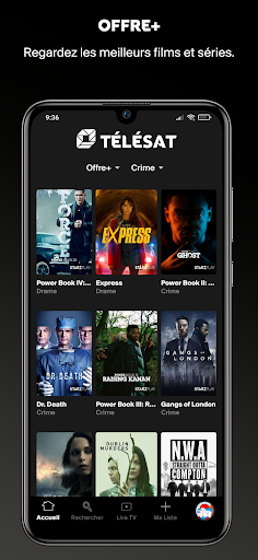 Grâce à l’application TÉLÉSAT APP, regardez la télévision mais aussi des films & séries sur votre smartphone ou votre tablette et ce, même si vous n’êtes pas à la maison. Profitez des contenus offerts par TÉLÉSAT partout dans l’Union européenne quand vous le souhaitez. Accédez à notre catalogue de films à la demande et regardez les films que vous avez loués sur votre décodeur satellite ou sur notre site web dédié (livetv.telesat.be). Il ne vous restera plus qu’à louer votre film préféré et l’emporter partout avec vous !