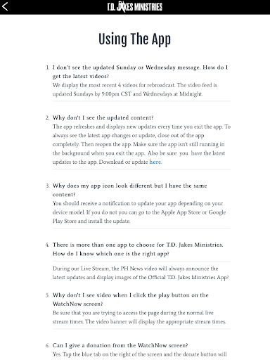 Our official T.D. Jakes Ministries app has been upgraded with a new look and feel! With this app you can: