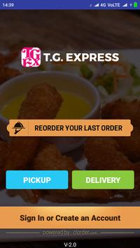T G Express mobile ordering app supplements the desktop/web/facebook ordering services for its customers.Customers can place pickup/delivery orders with ease and securely pre-pay using Creditcard/Paypal. Customers can either create new account or login using Gmail/Facebook to keep track of their orders and account details. Order from history makes it easy to re-order old orders.