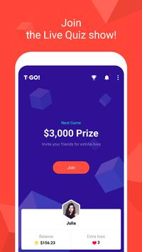 T-GO! is a live trivia quiz show with cash prizes for everyone.