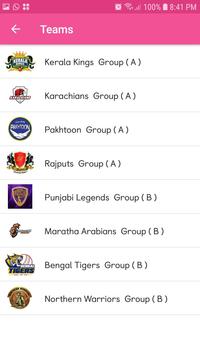 such as list of all players of Karachians, Kerala kings, Pakhtoon, Rajputs, Punjabi Legends, Bengal Tigers, Maratha Arabians, Northern Warriors.