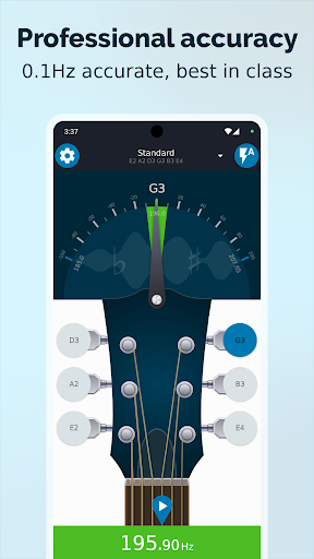 Easy Guitar Tuner isn't just a basic tuner. It's a precise, responsive, and easy-to-use chromatic tuner that will suit all your needs. You can fine-tune your electric guitar, acoustic guitar, bass, ukulele, or mandolin in seconds thanks to your mobile phone.