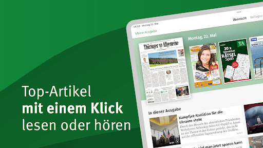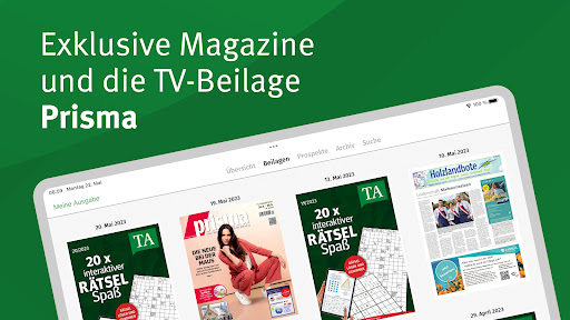 Leggi il tuo giornale ovunque - nella metropolitana, nel caffè o in vacanza.Puoi leggere tutte le edizioni scaricate in qualsiasi momento senza una connessione Internet.Inoltre, non devi fare a meno di brochure digitali e contorni, troverai tutto con un solo clic nel nostro menu Start.
