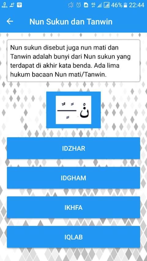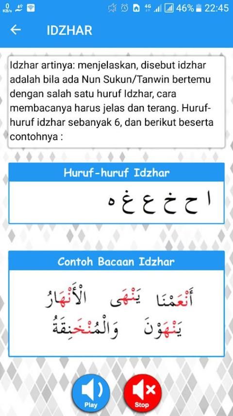 *) Menu Hukum Bacaan dan contoh bacaan dengan suara pelafalan