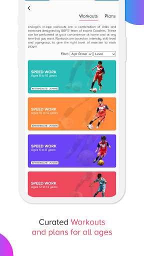 The curriculum has been put together with the combined experience of hundreds of certified BBFS coaches across the country. Most of the drills are ‘with-the-ball’ so that the user can continue to improve his or her football skills and have fun even while doing workouts. The entire curriculum is personalized based on age and skill level. Focuses mainly on technical and physical aspects of the game, such as basic motor skills, speed, ball mastery, dribbling, and more.