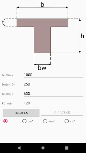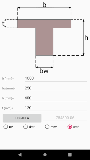 Very simple application to calculate the moment of inertia of T-beams.