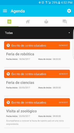 Is there news to share with the whole community? Following a few steps, the school platform administrator can create the news with text, images and links. Then it is published and this news reaches directly to all members of the community through the application on their smartphones. Similarly, newsletters can be shared, school calendar events, institutional documents and homework, among others.