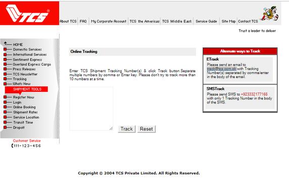 TCS has made it all the more convenient for you to track and trace your shipment's by offering you a variety of tracking tools.