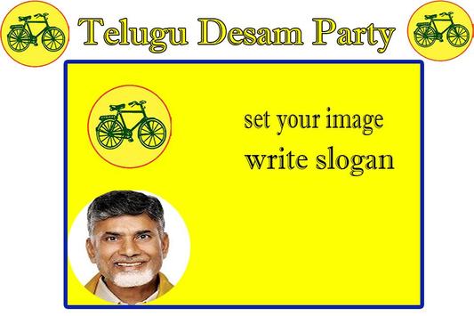 Make your beautiful TDP Flex Maker at home very easily with your photo and name with Indian Telugu Desam slogan, Telugu Desam badges, Telugu Desam sticker and Telugu Desam Flex Maker. You can also write your name on slogan with amazing HINDI and English keyboard and share your photo with friends.