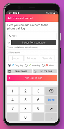 Also, you can add any call to the log with a specific time, date, during, and type.