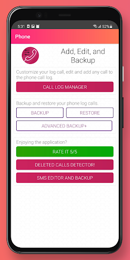 Call log manager (Edit, Add, Backup, Restore).