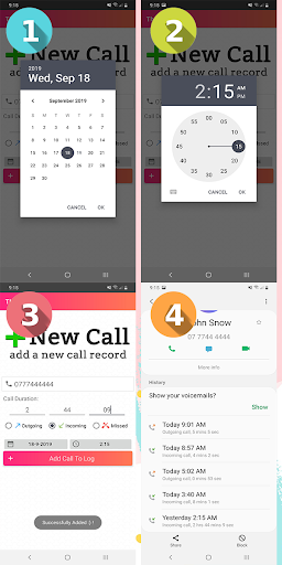 Generate a fake call and store it in your phone log history.