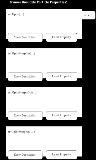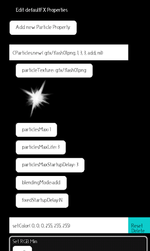 - "Almost" Real Time particle editing (change texture, add/remove properties and so on..)