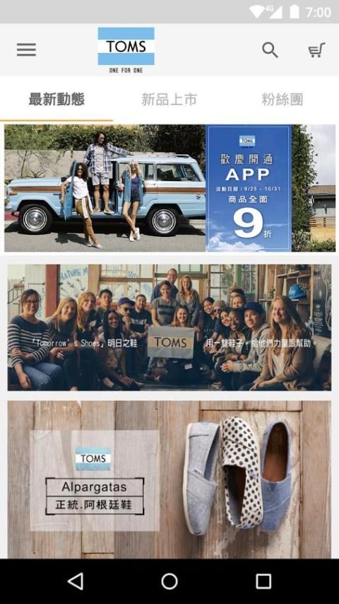 TOMS官方行動購物APP,將不定時推出商品資訊、獨家限定優惠,帶給您網路購物的全新體驗。