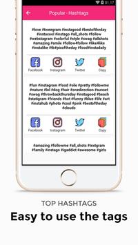 The most simple and functional application for promoting photos and posts in Instagram. The application contains a large number of popular hashtags. For convenience, they are divided into categories. You can add your own tags. There are buttons of popular social networks for quick access. In this app you can find best and top tags for likes for Instagram to increase your followers.