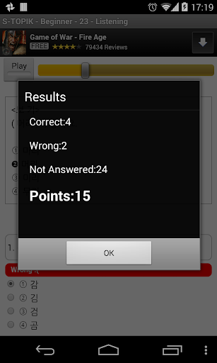 * TOPIK ONE allows you to answer and compute the result just as the real TOPIK exam.