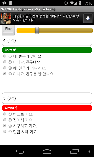 TOPIK ONE is the best way to study for the Test of Proficiency in Korean in your Android phone! It simulates the real test and contains previous TOPIK exams.