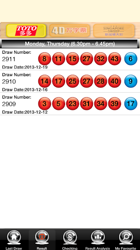 ***We do not warrant the accuracy, completeness of the information contained in this Apps,The official results from Singapore Pools