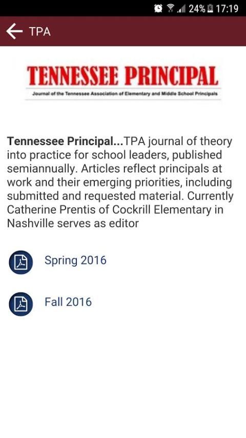 The only Associations with their focus on principals are those such as the Tennessee Principals Association. All our members are principals, have been principals or desire to be principals. TPA's entire program of work, structure of organization and benefits delivery systems were planned around the professional and personal development of its members.