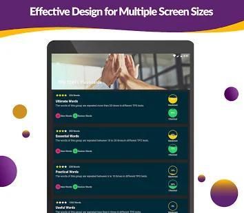 TPO TOEFL Flashcards is the ideal solution for learning words efficiently by showing them just before you would forget. The TPO tests are a set of full-length practice TOEFLs that were used for real tests in previous years. The words smartly extracted by their repetition and importance in nearly 50 TPO tests. Samples, Definitions, Synonyms, Pronunciations are presented.