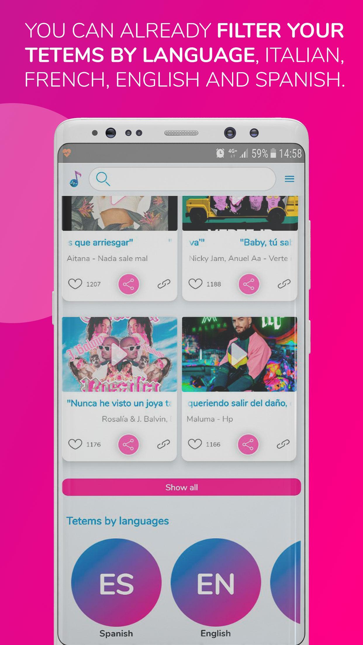 TALK THROUGH MUSIC is a creative app that facilitates communication between users through mobile messaging platforms such as WhatsApp, iMessagin, Wechat, using audio fragments and pre-loaded TETEMS short songs to transmit messages and express emotions in song format.
