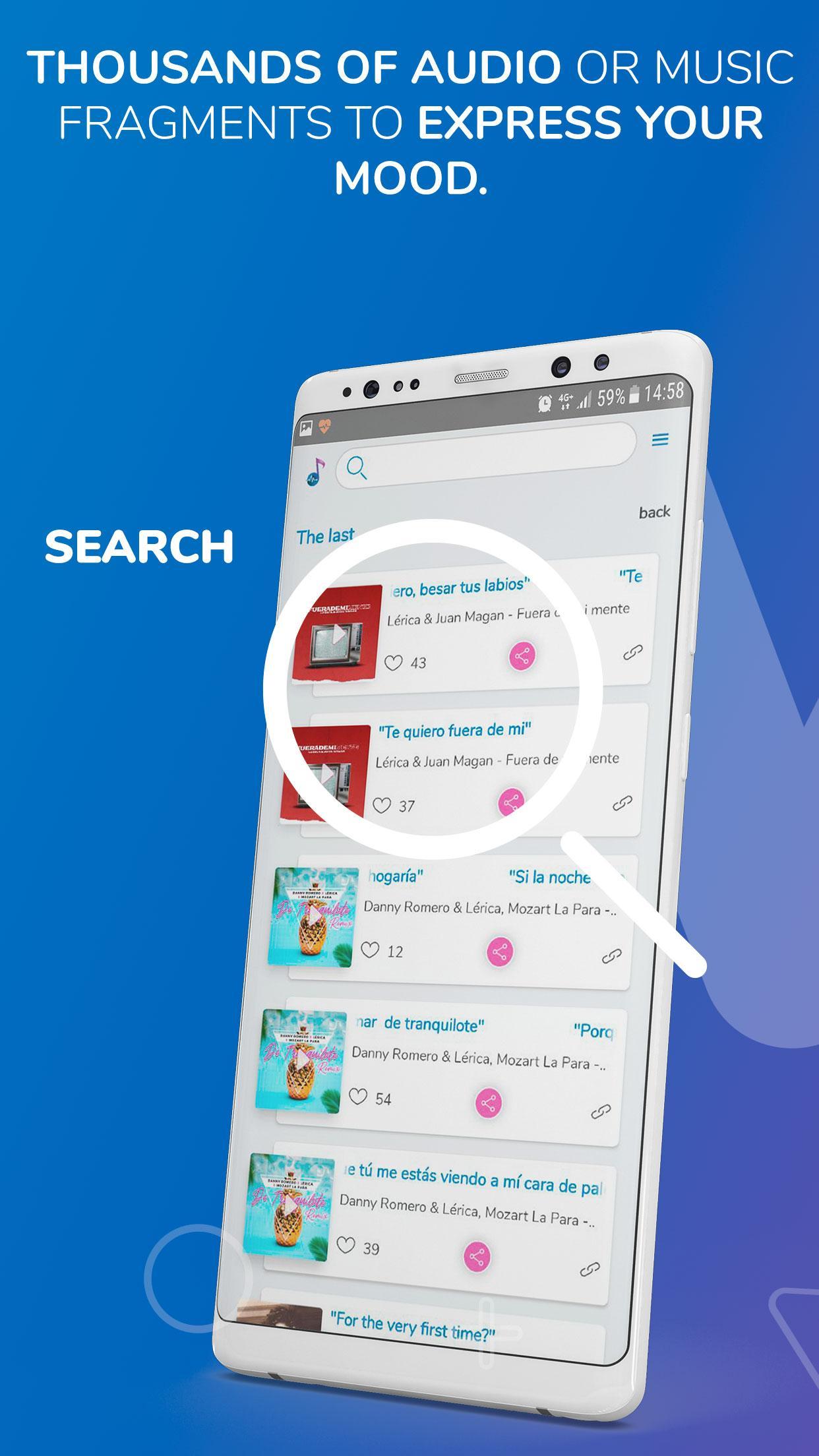 A short audio fragment (phrase or music) that you can share with your friends to express your mood in an original and fun way.