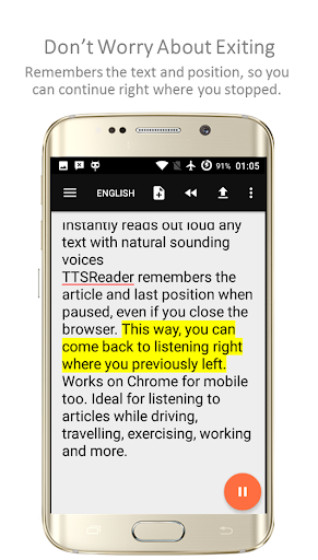 Remembers the article and last position when paused, even if you exit the app. This way, you can come back to listening right where you previously left.