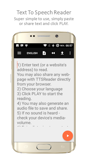 Text To Speech (TTS) Reader for any text (write your own or text file), website and PDF files.