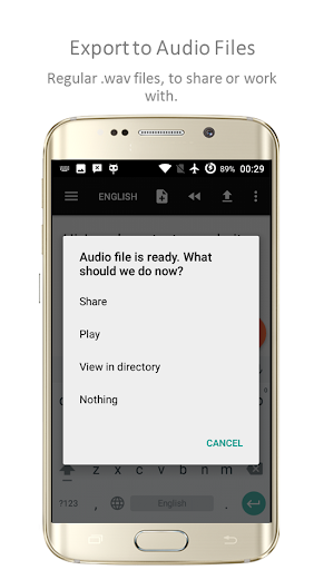 Send your friends audio messages in different voices and accents! Write in English, let it be read by one of the many voices and languages. Spanish for example will result in your text being read with a Spanish accent. Send the generated voice message to friends via messaging, Whatsapp, or any other social media. See how they react ;) It's a lot of fun!